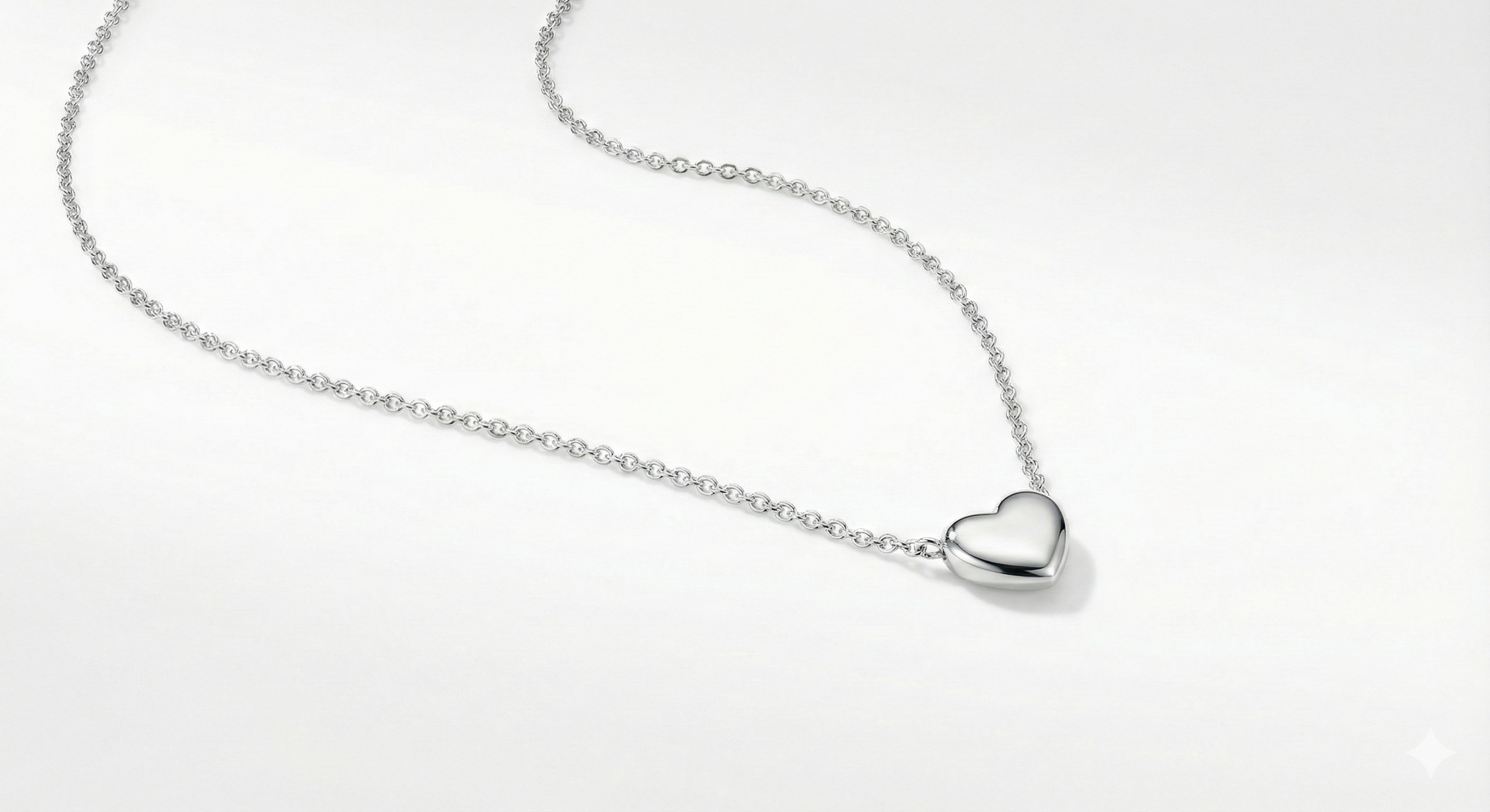 Collar de cadena fina en plata .925 con un colgante en forma de corazón delicado. Un diseño romántico y moderno, ideal como regalo o para uso diario.